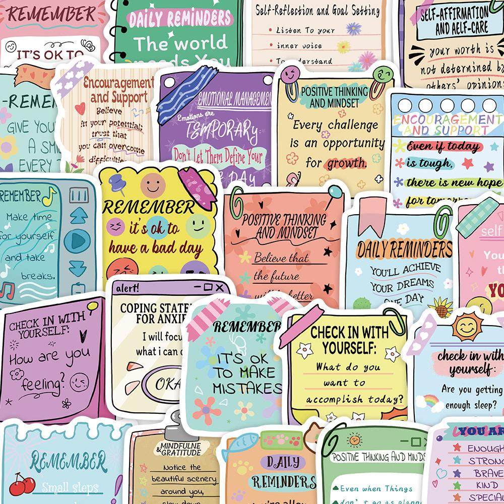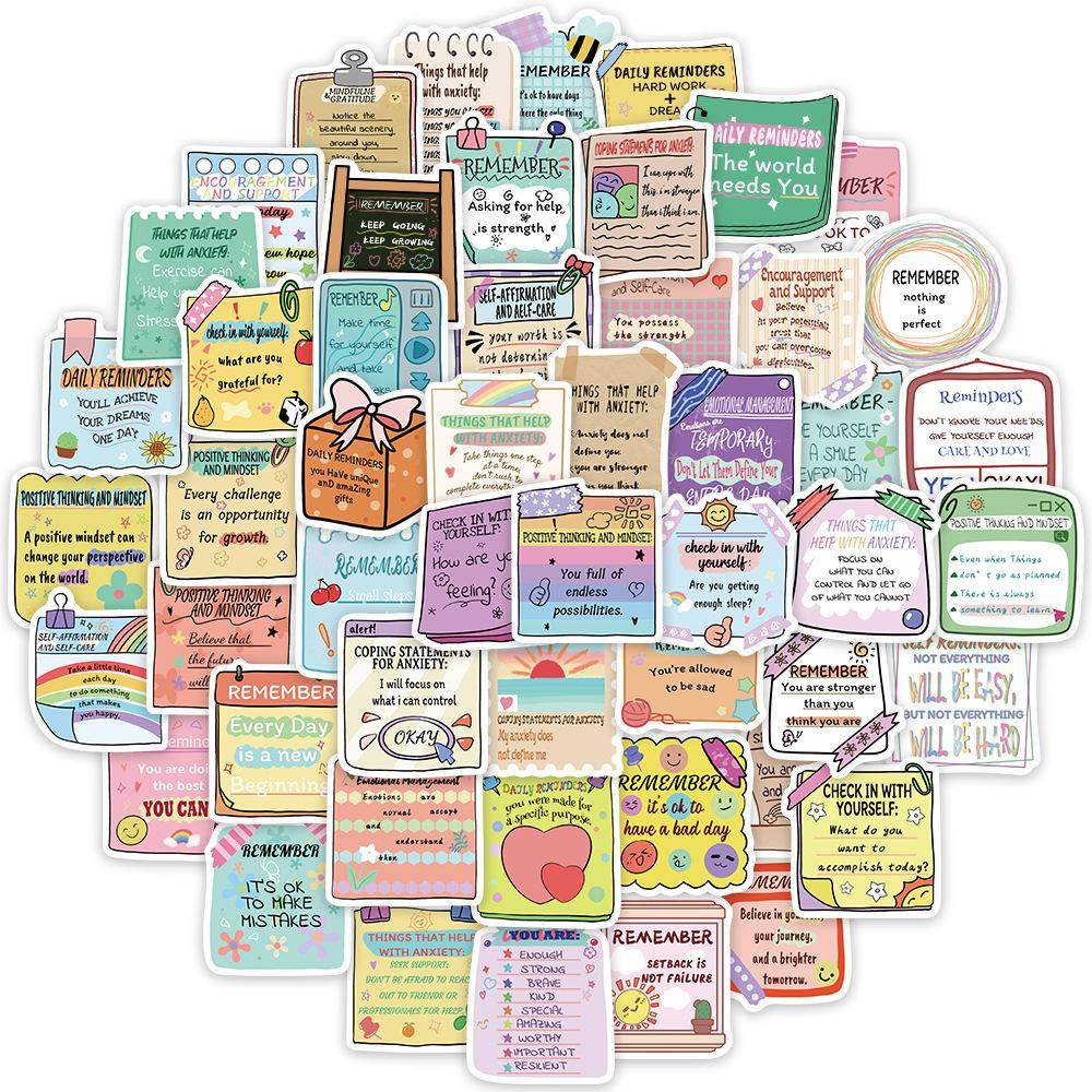 50张心理健康英文励志贴纸手账电脑水杯防水贴画 Mental health