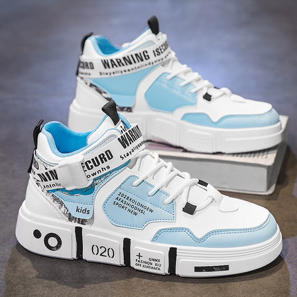 帆布高帮男鞋冬季中学生运动厚底板鞋青少年休闲小白百搭平底潮鞋