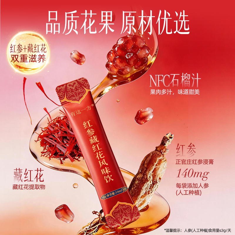 云南白药旗舰店红参藏红花风味饮浓缩红参西红花石榴汁滋养元气