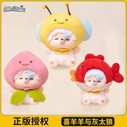 正版喜羊羊与灰太狼帽子系列玩偶懒羊羊公仔毛绒玩具娃娃生日礼物
