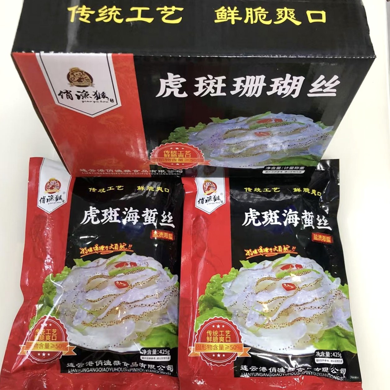 俏渔猴正宗淡盐海蜇丝海蜇头野生非特级开袋即食凉拌无沙爽脆鲜美