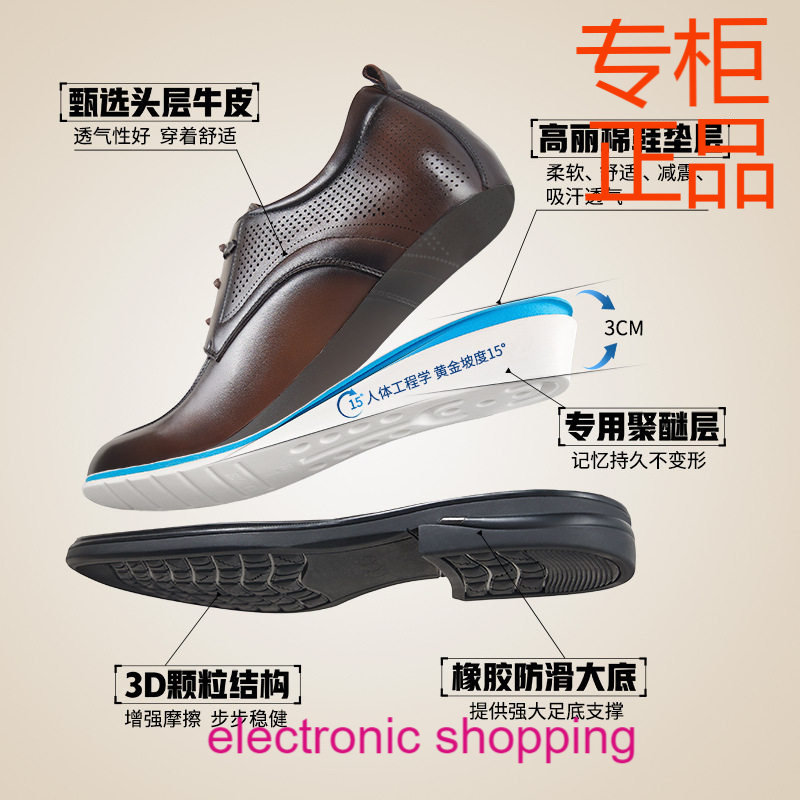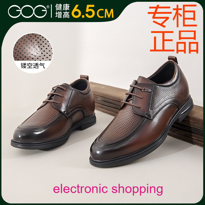 高哥内增高鞋秋季新款凉鞋真皮休闲男鞋镂空透气单鞋商务皮鞋男款