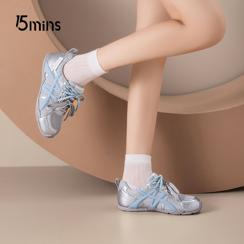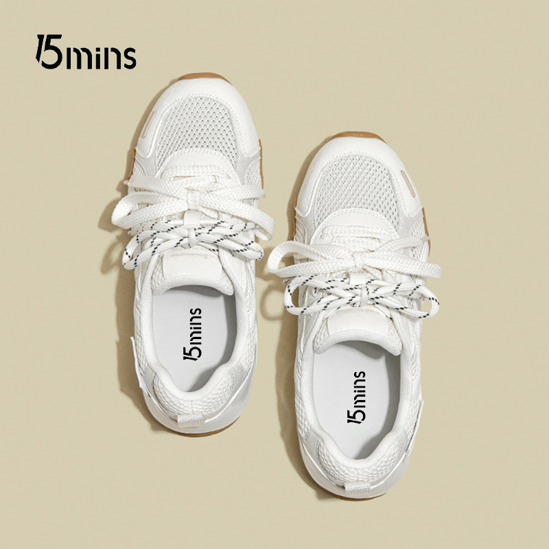 15mins韩版德训鞋女2025新款夏季网面拼色休闲鞋百搭透气平底板鞋
