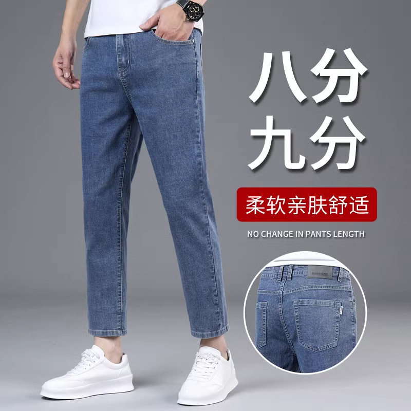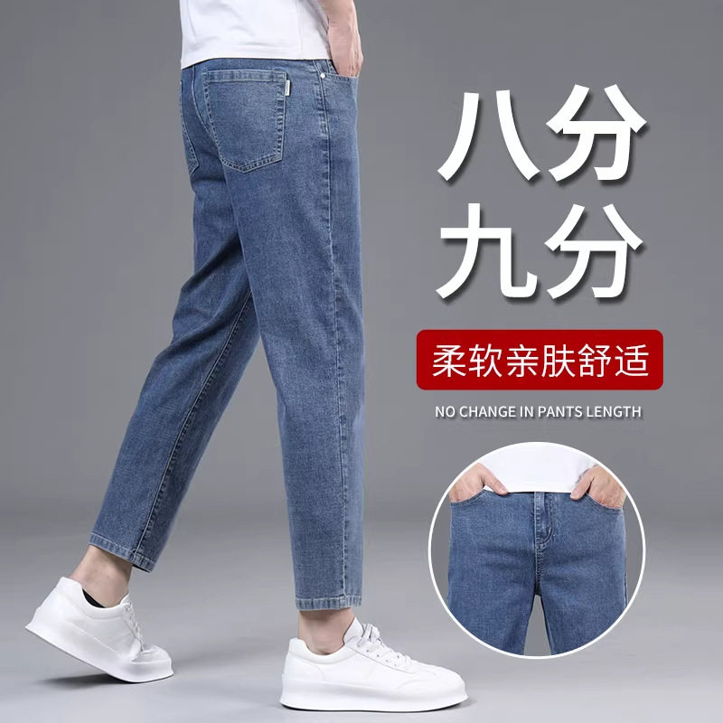 九分牛仔裤男矮个子八分裤直筒弹力春夏季薄款小个子显高9分男裤