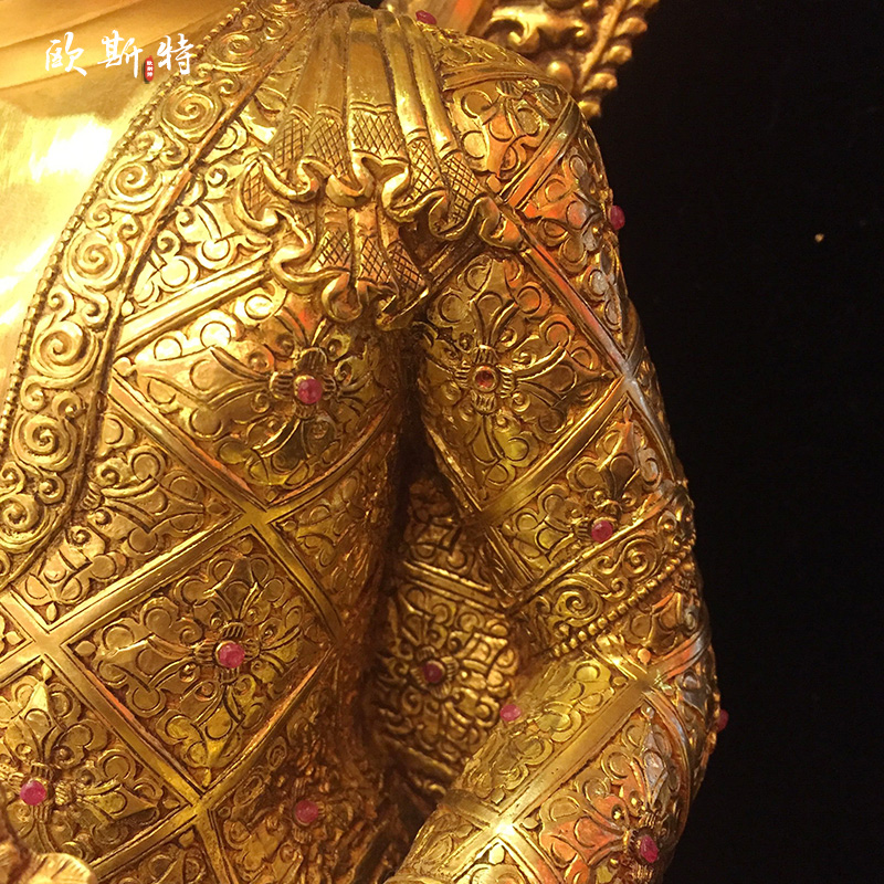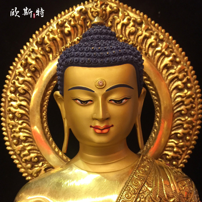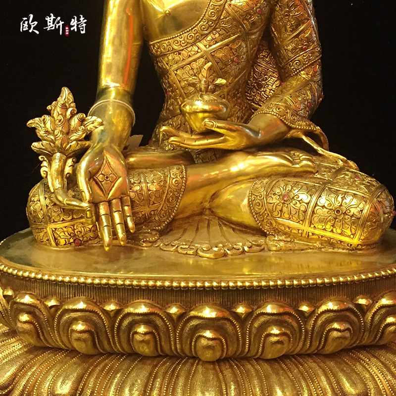 药师如来铜像西藏家居客厅玄关摆件尼泊尔铜全鎏金12寸药师铜像