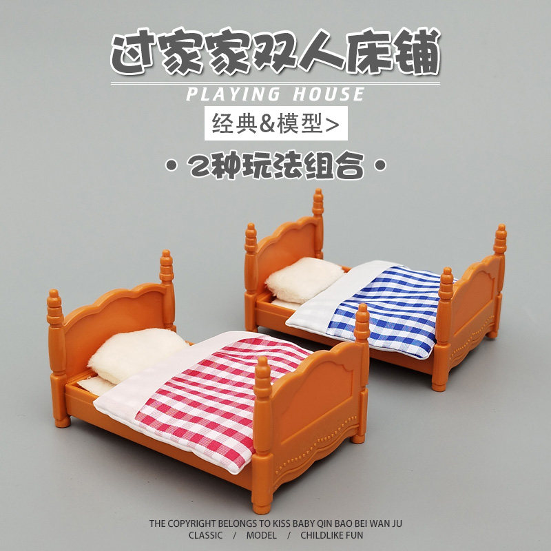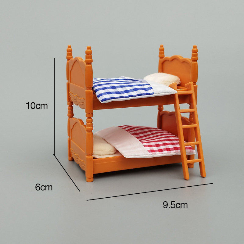 微缩场景房间家具双人床上下铺儿童过家家仿真娃娃屋配件小物件女