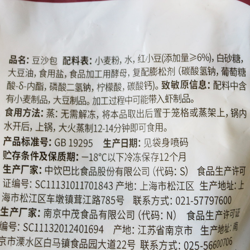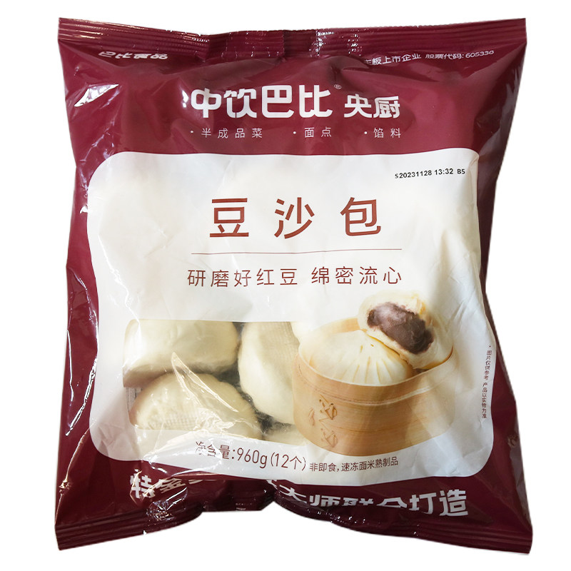 中饮豆沙包速冻巴比大包子早点早餐半成品酒店80g*12个面点方便