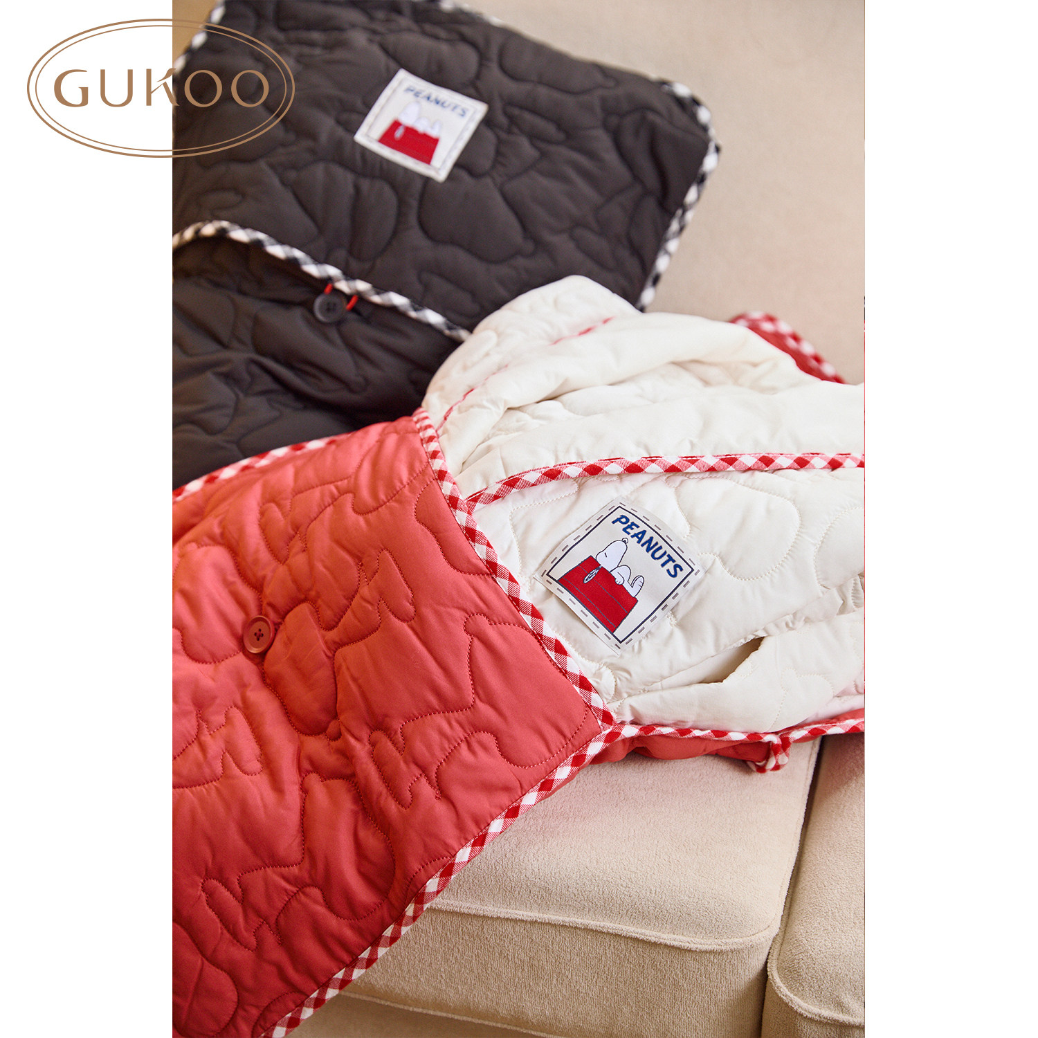 Gukoo/果壳收纳袋夹棉大容量史努比联名新款新年红品多功能包包
