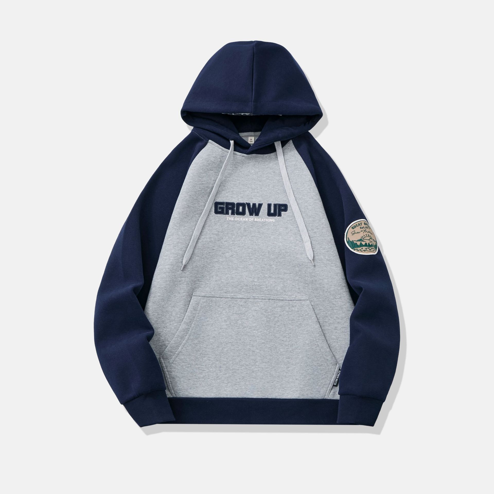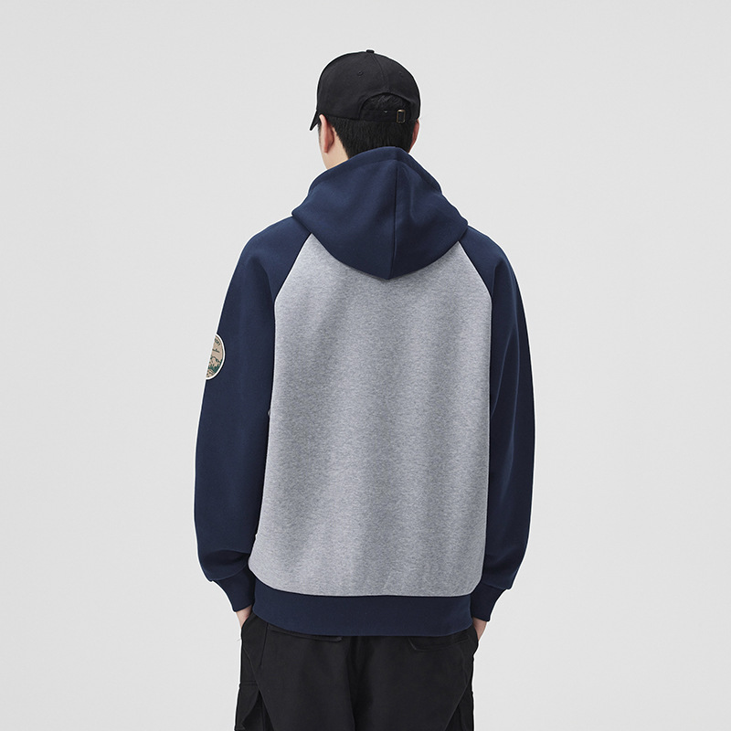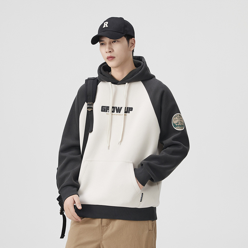 2025春秋季新款青年美式潮流撞色连帽卫衣男宽松休闲印花上衣