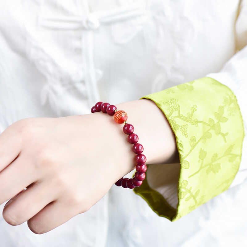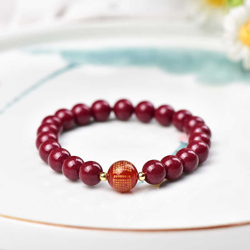 高含量朱砂心经吊坠紫金砂帝王红砂观音心咒转运珠手串新中式原创