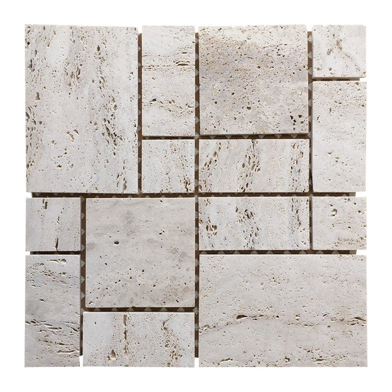米黄洞石马赛克墙贴仿古拼图大理石背景墙客厅阳台玄关吧台文化石