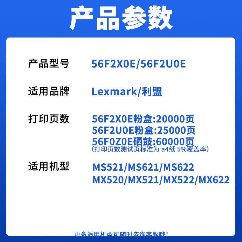 适用利盟MS521粉盒MS621/622 MX520硒鼓MX521 522 622墨盒56F2X0E