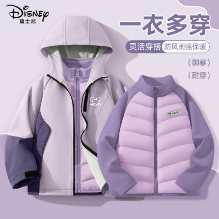 迪士尼女童外套2025新款秋冬保暖儿童冲锋衣三合一可拆卸羽绒内胆