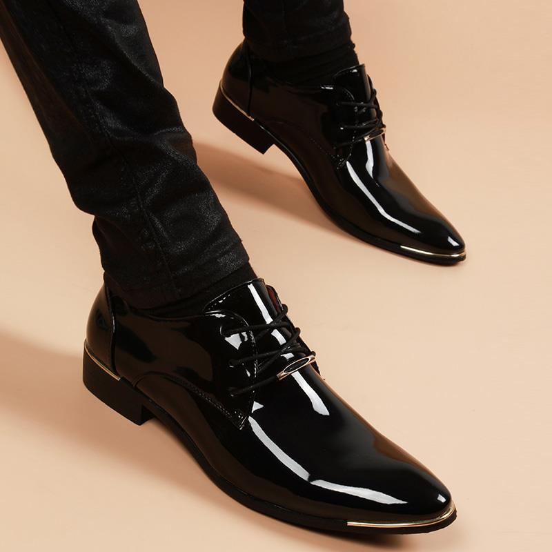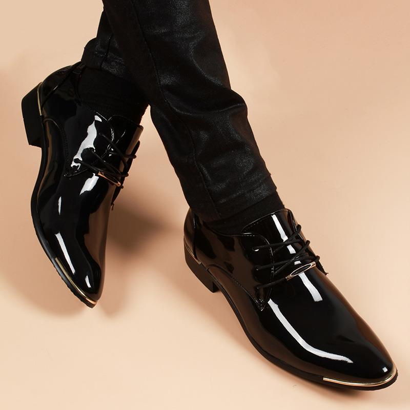 秋冬男士皮鞋英伦韩版黑色尖头亮面内增高透气男鞋商务休闲1027e