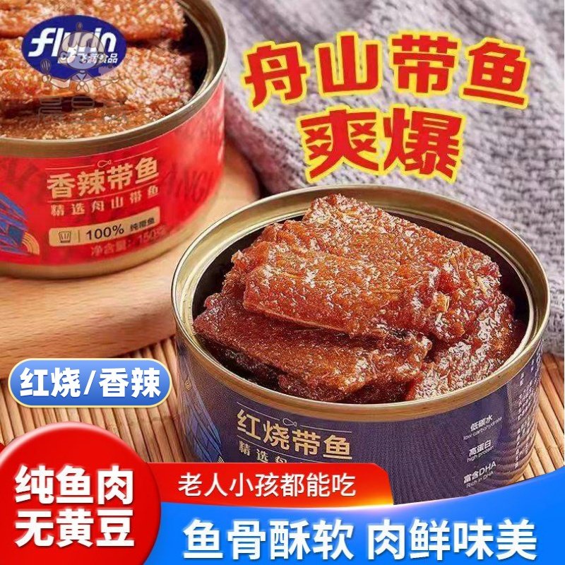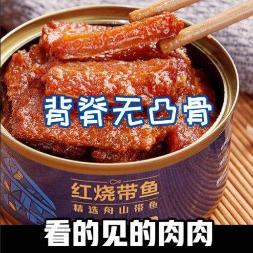 舟山带鱼厂家直销大带鱼中段香辣红烧下饭罐头开 罐即食熟食零食