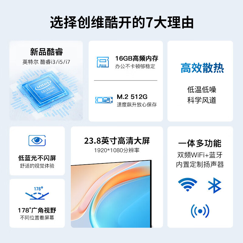 创维一体机电脑23.8英寸酷开高清超薄12代酷睿四核i3i5i7家用学习办公游戏娱乐设计直播台式主机全套