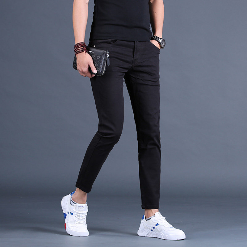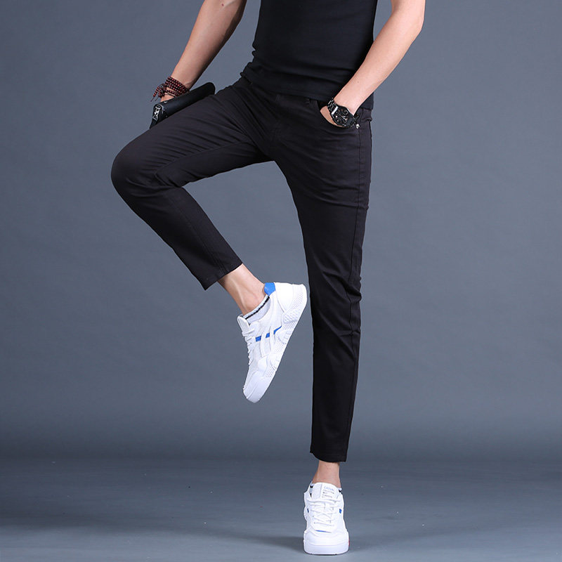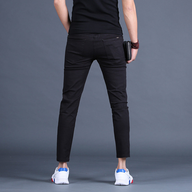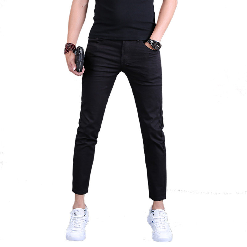 纯黑色牛仔裤男九分裤修身小脚韩版潮流收腿9分休闲裤夏季裤子男