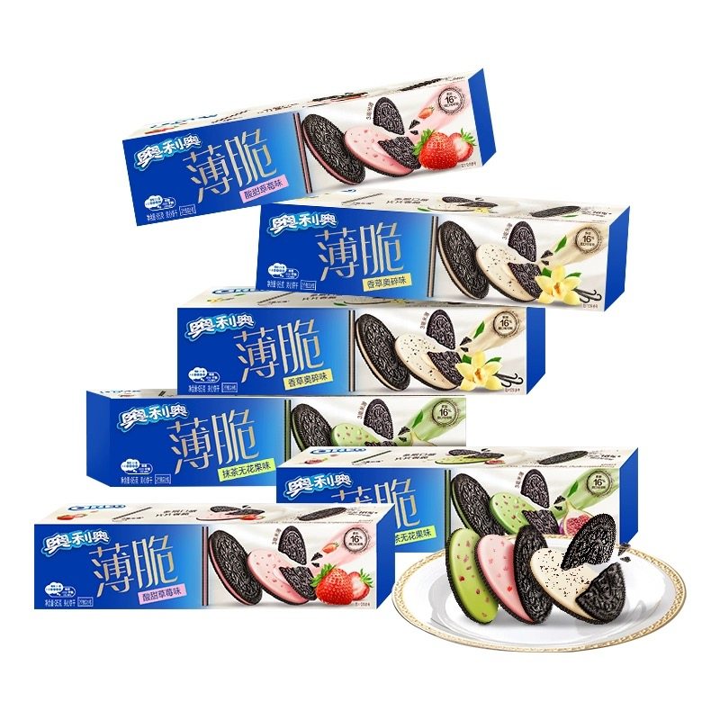 奥利奥薄脆夹心饼干95g/盒超薄巧克力草莓味青柠芝士味饼干整箱