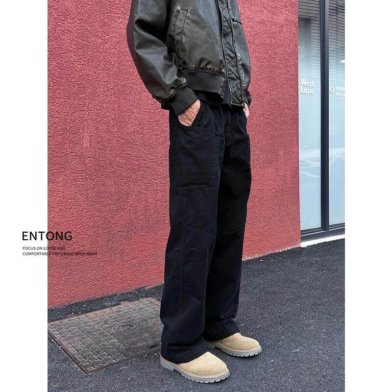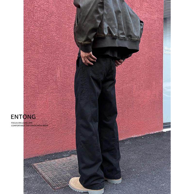 Entong美式高街vibe黑色休闲工装裤男生高级感痞帅宽松直筒微喇裤
