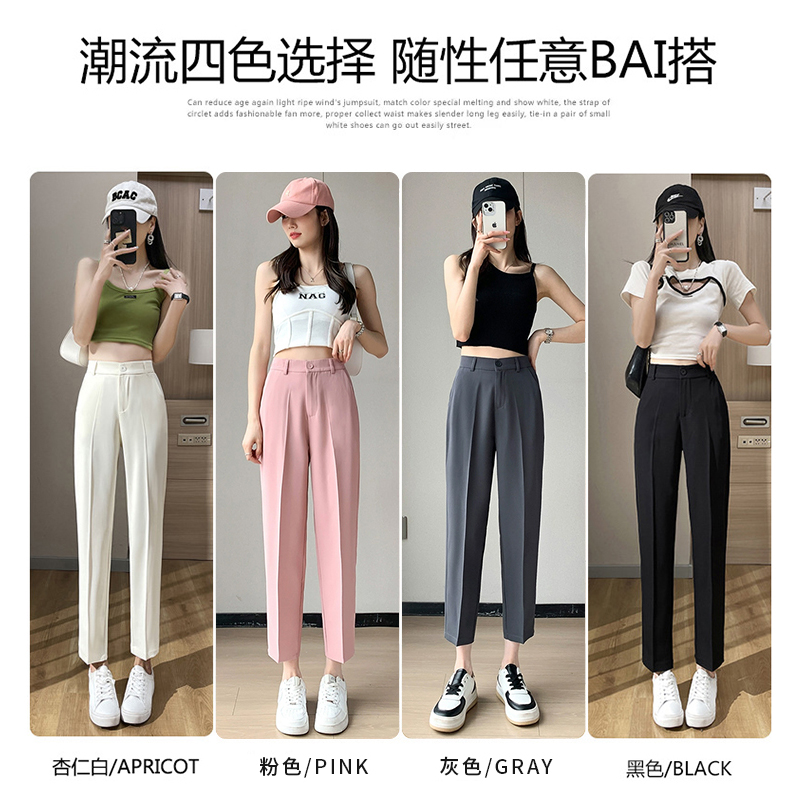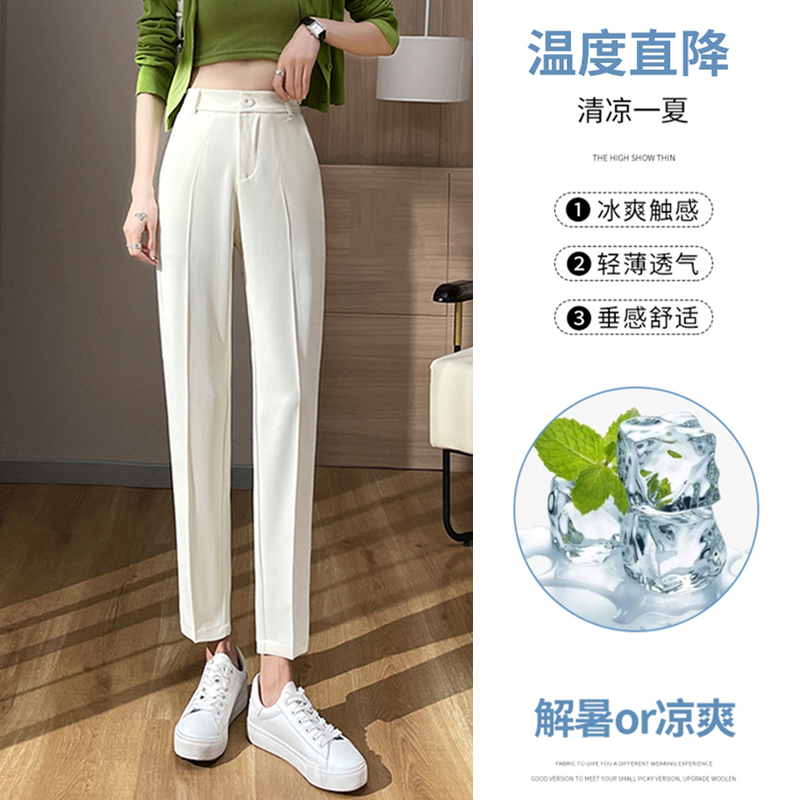 白色西装裤女夏季薄款小个子八分萝卜老爹裤高腰烟管冰丝哈伦裤子