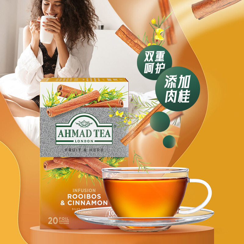 AHMAD TEA亚曼进口茶叶南非路易波士肉桂代用茶袋泡茶下午茶