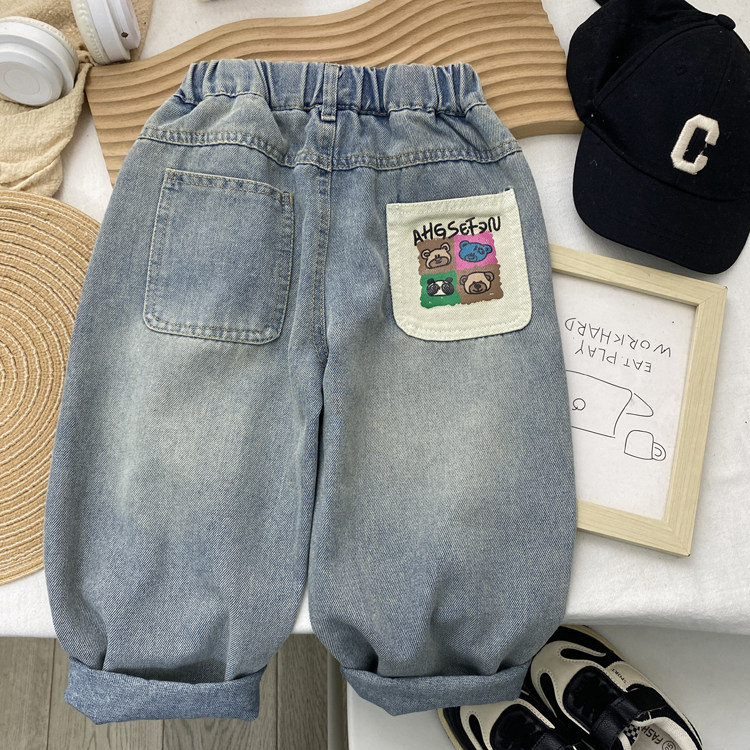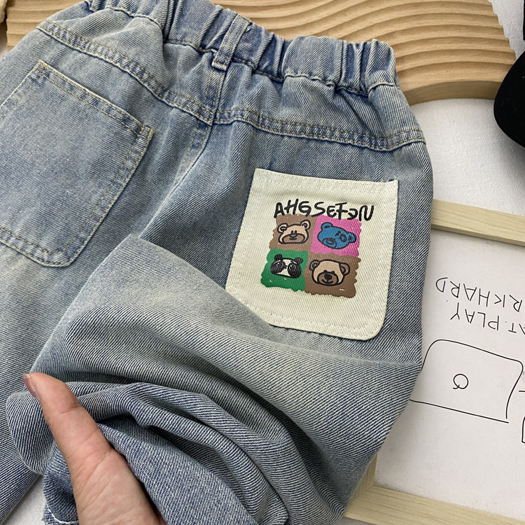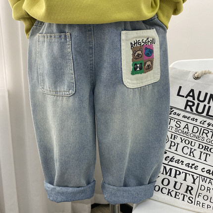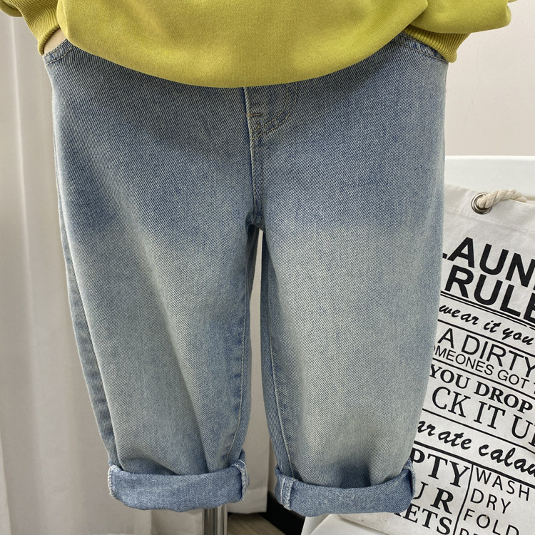 儿童软牛仔裤男童裤子春秋款2025新款中童小童男孩浅蓝色洋气韩版