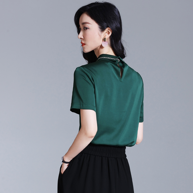 璐丝百丽墨绿色雪纺衫短袖时尚