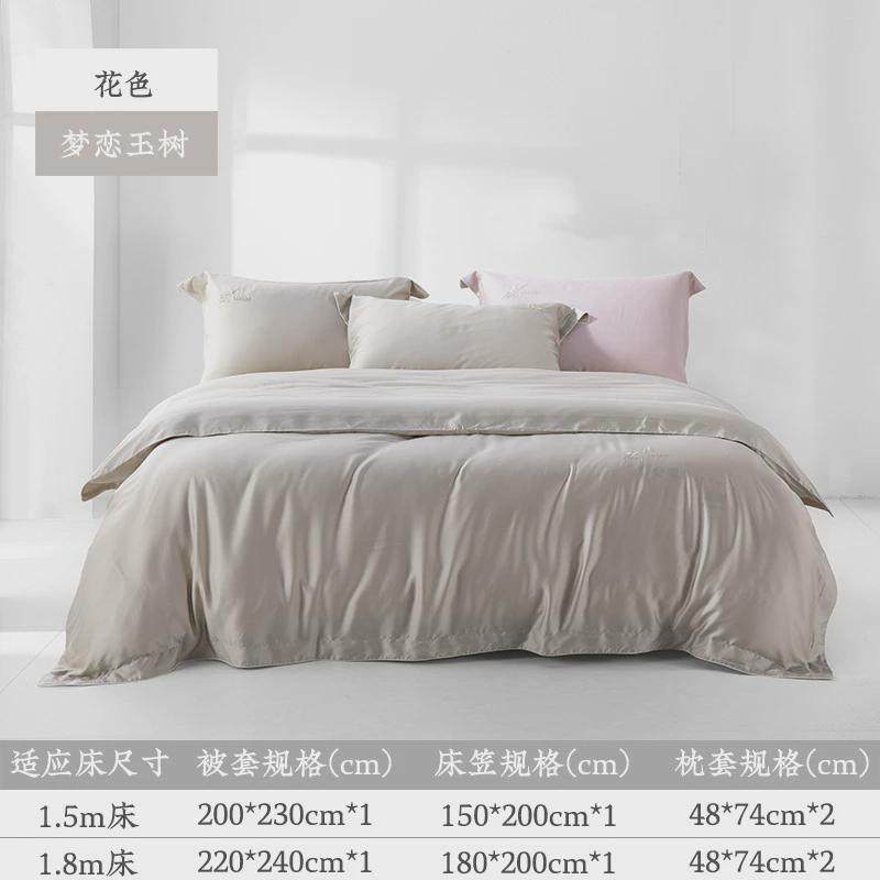 远梦家纺床上四件套夏天套件凉感床笠夏凉被套清新双人家用床品