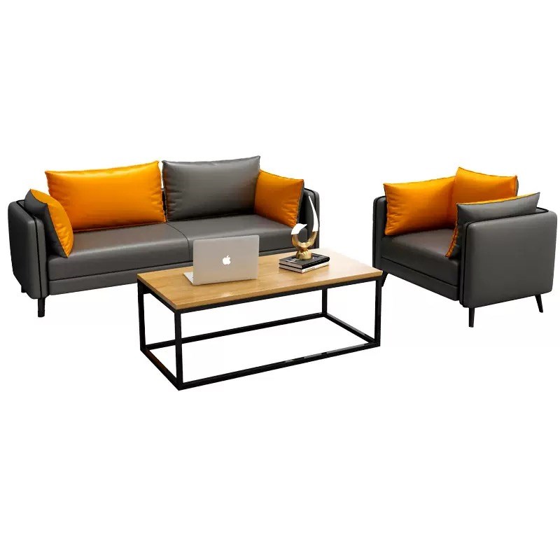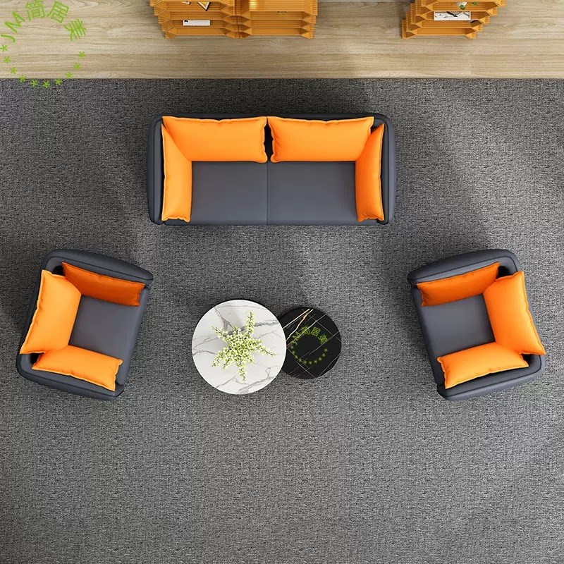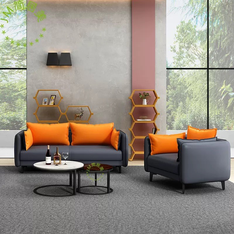 办公沙发茶几组合简约现代商务会客洽谈休闲室接待区真皮实木沙发