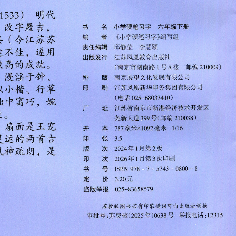 统编人教版 小学硬笔习字 六年级下册 小学6六年级下册 语文硬笔习字册钢笔描红练字帖 小学6年级同步教辅教材配套用书 正版