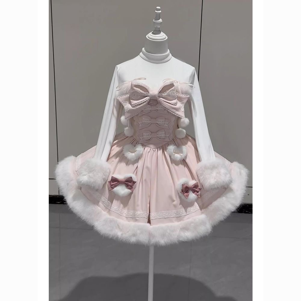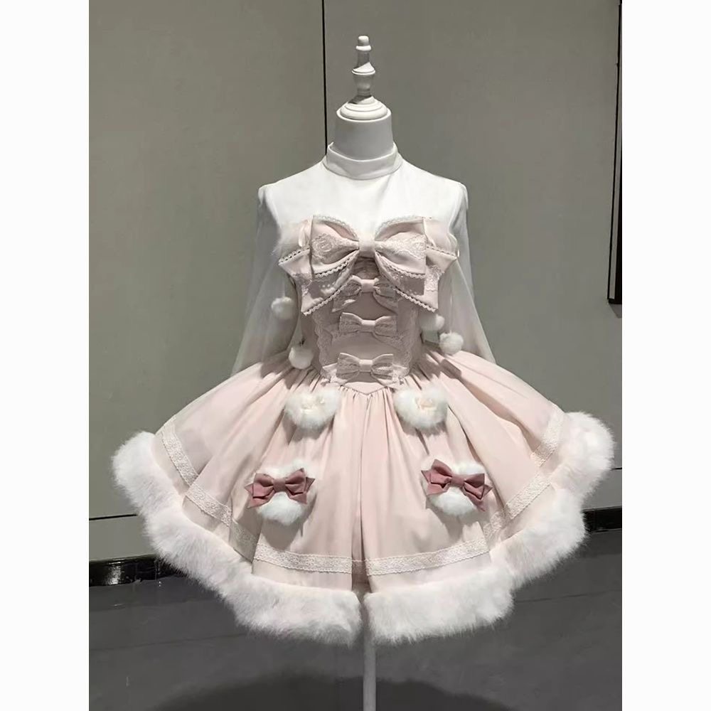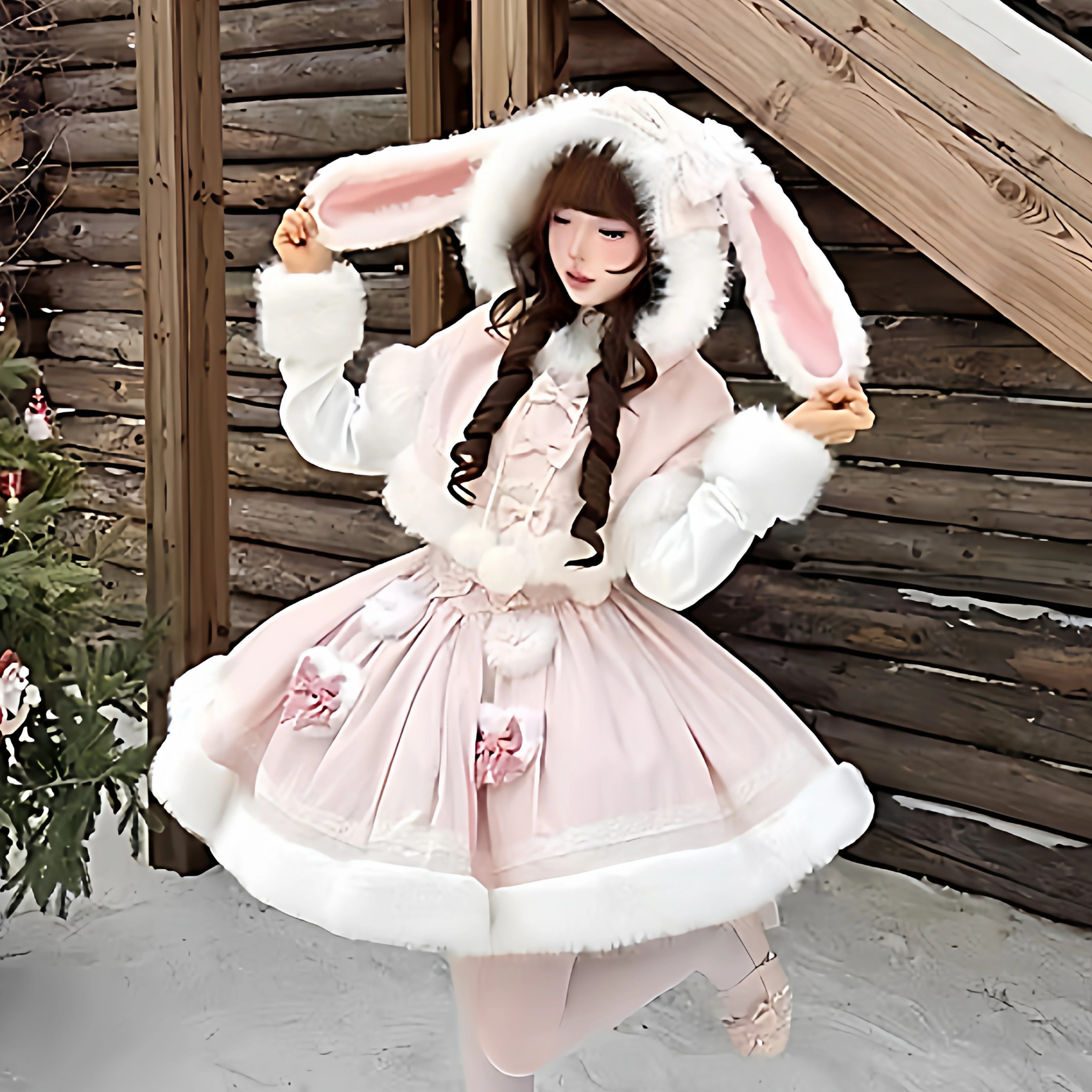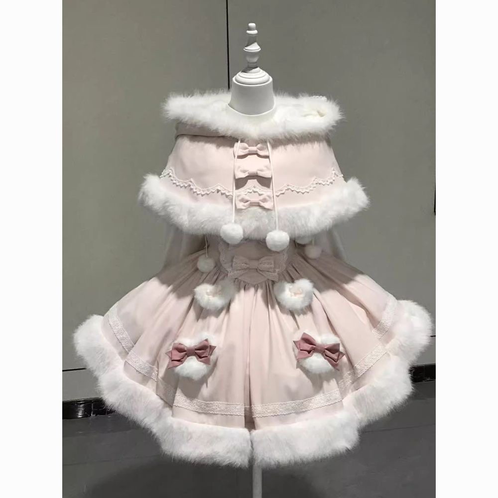 心愿小兔 秋冬新款日系重工优雅大小姐斗篷蝴蝶结公主连衣裙套装