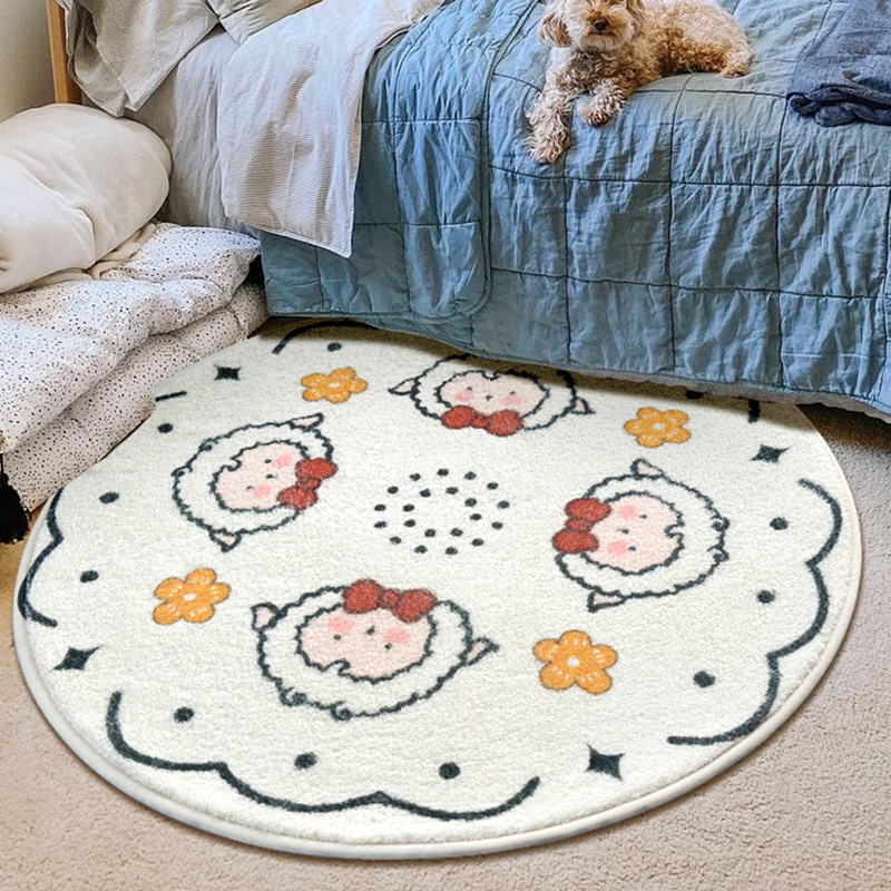 可爱卡通圆形儿童房卧室地毯床边地垫防滑爬行客厅家用转椅地毯