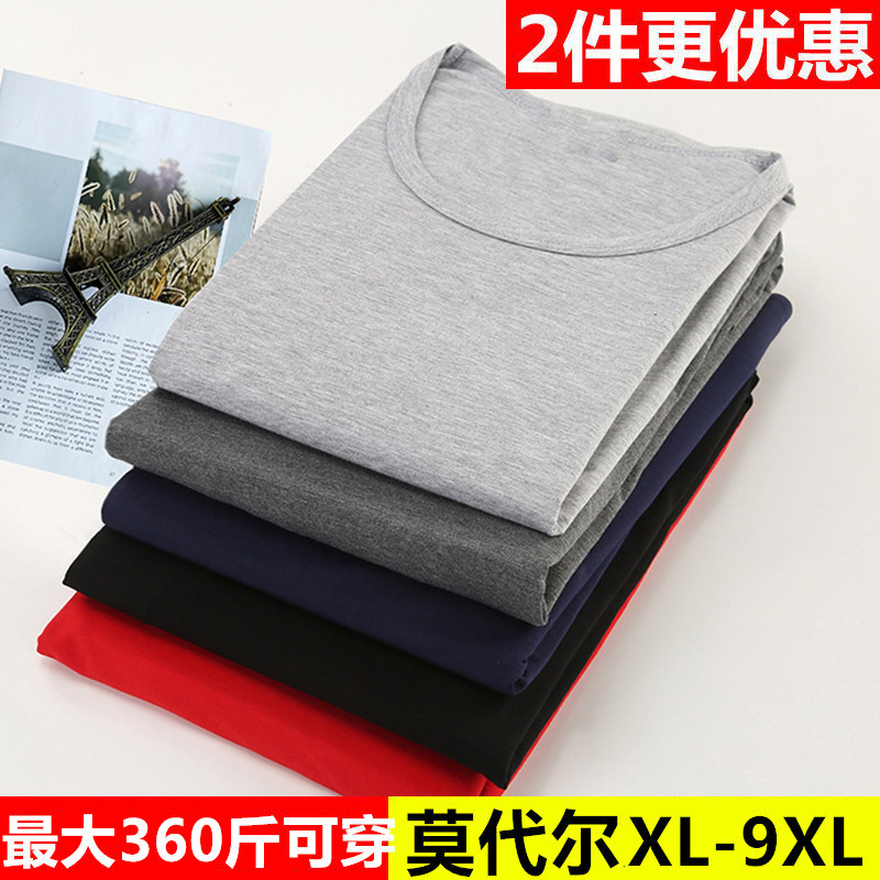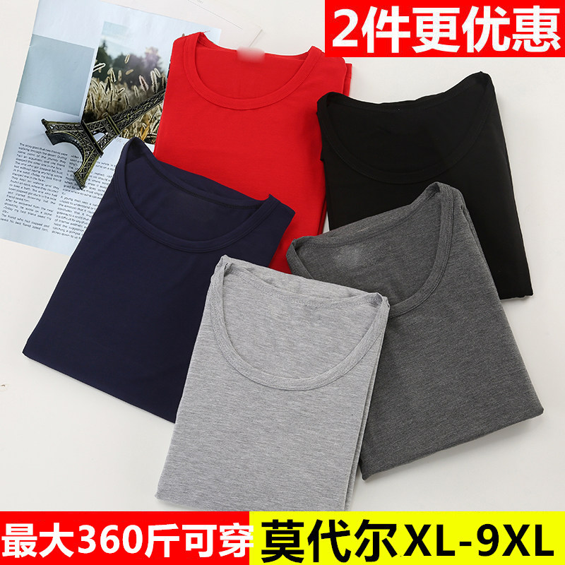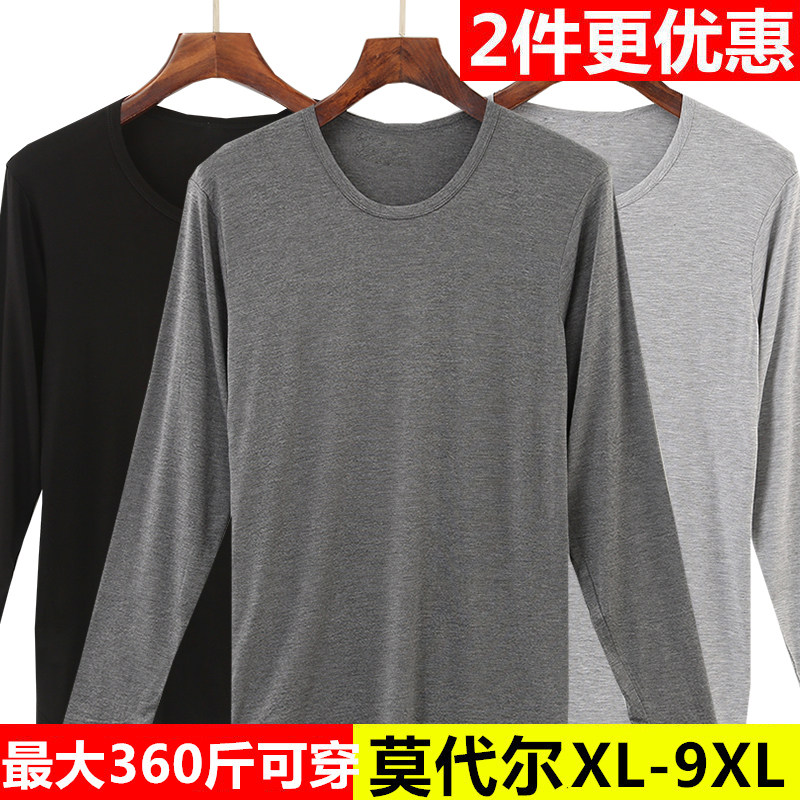 男士秋衣加肥加大码莫代尔薄款宽松弹力圆领保暖内衣打底衫