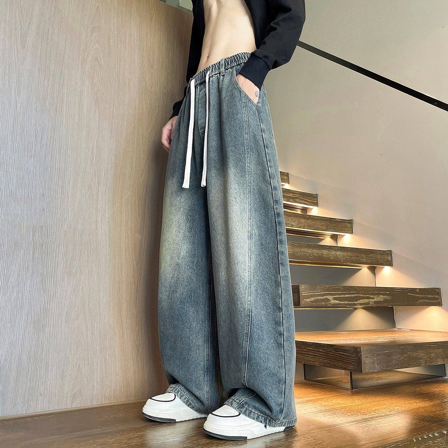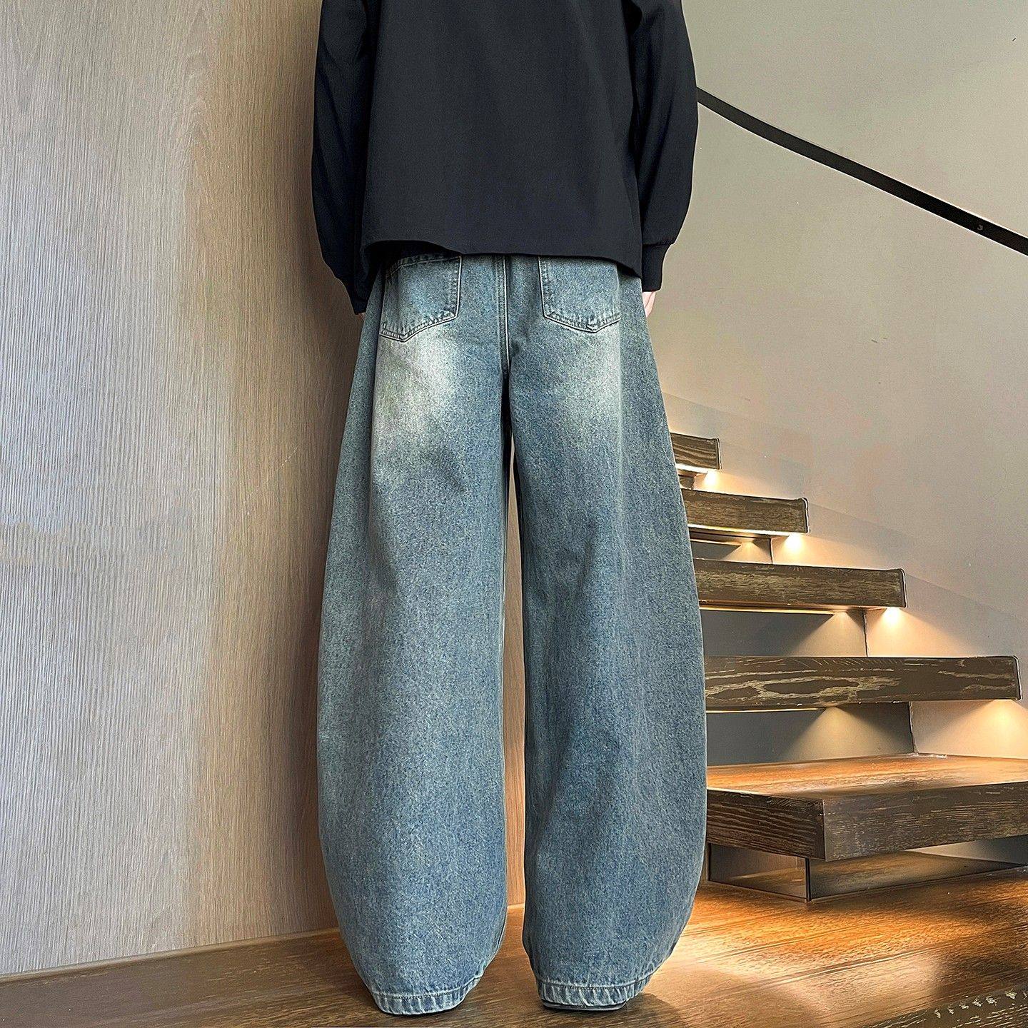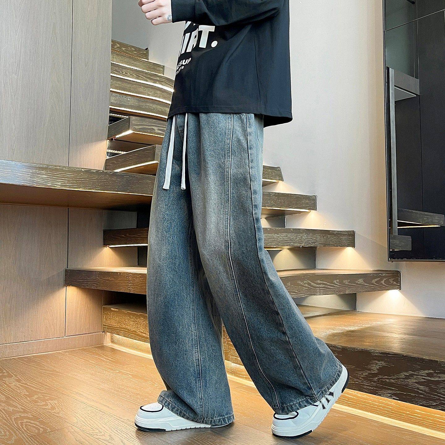 190高个子加长版青少年牛仔裤男宽松直筒潮流弯刀裤加绒加厚长裤
