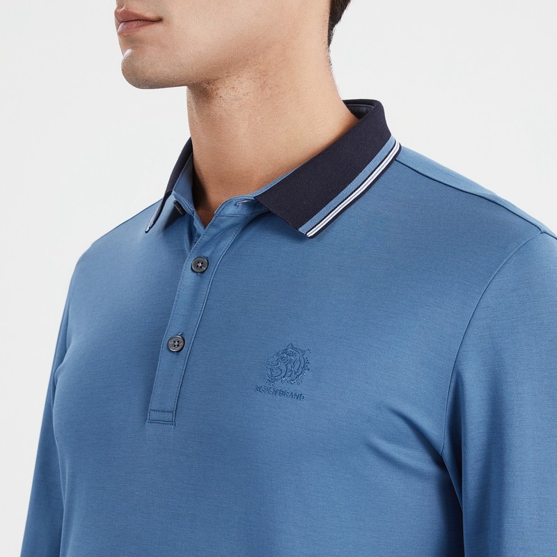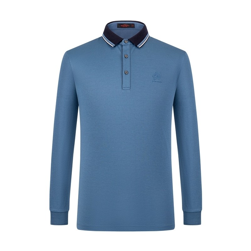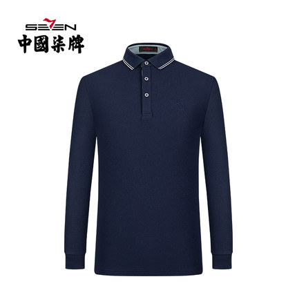 【清仓】柒牌奥莱男装长袖POLO衫男士长T恤撞色商务休闲上衣内搭