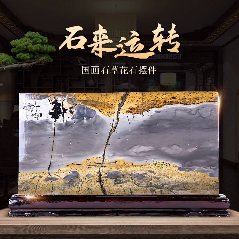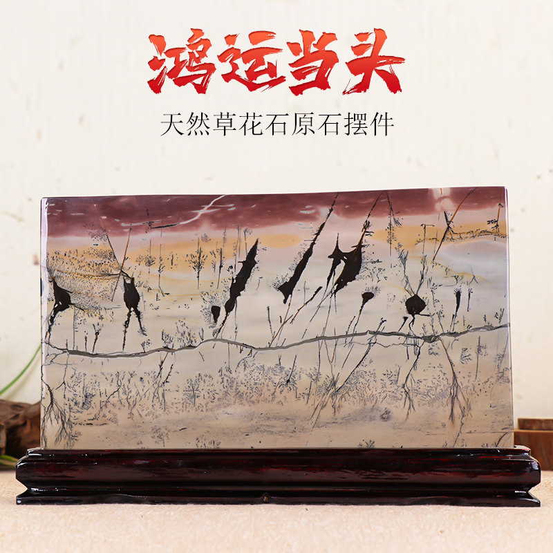 国画石原石摆件草花石天然观赏奇石客厅办公室装饰品开业乔迁礼物