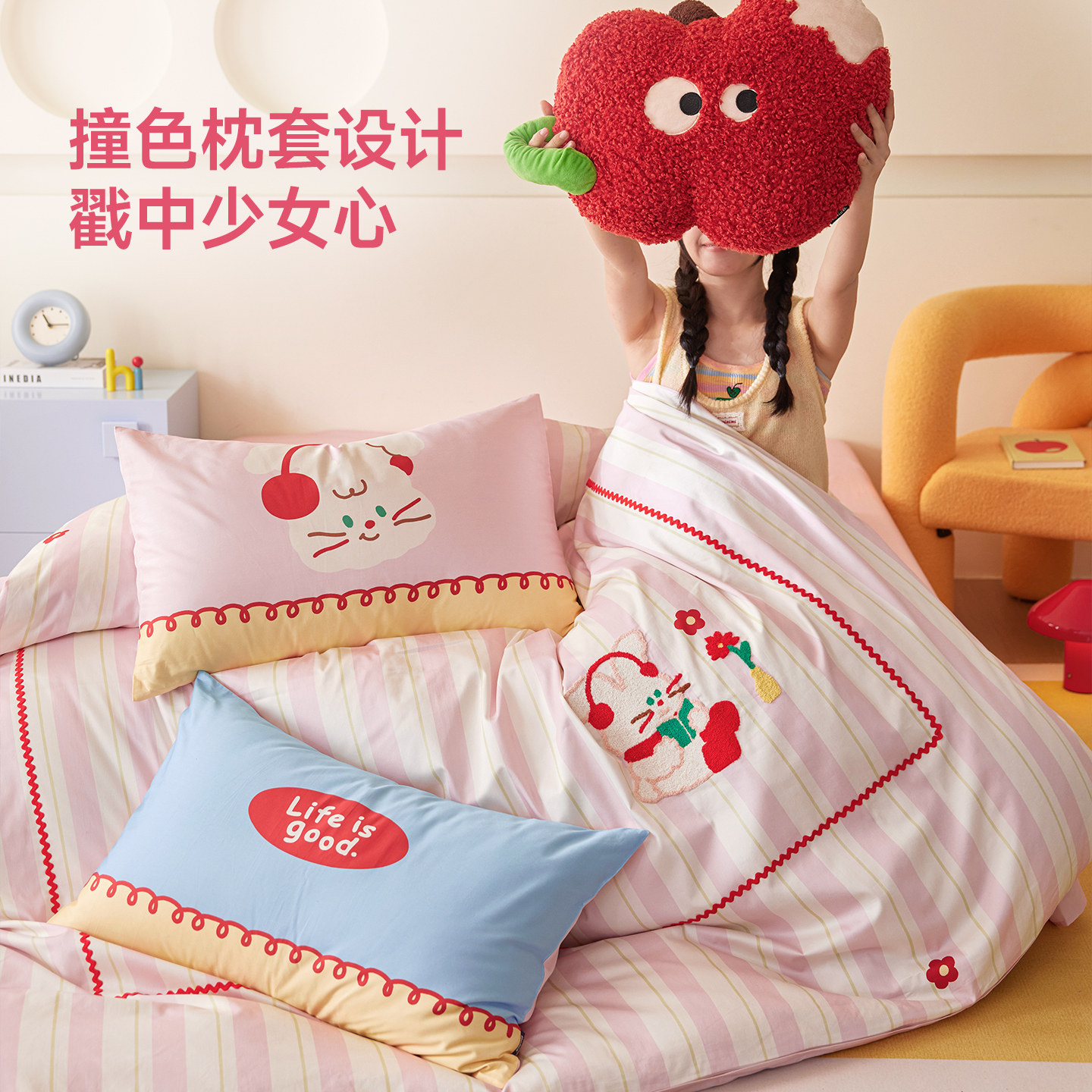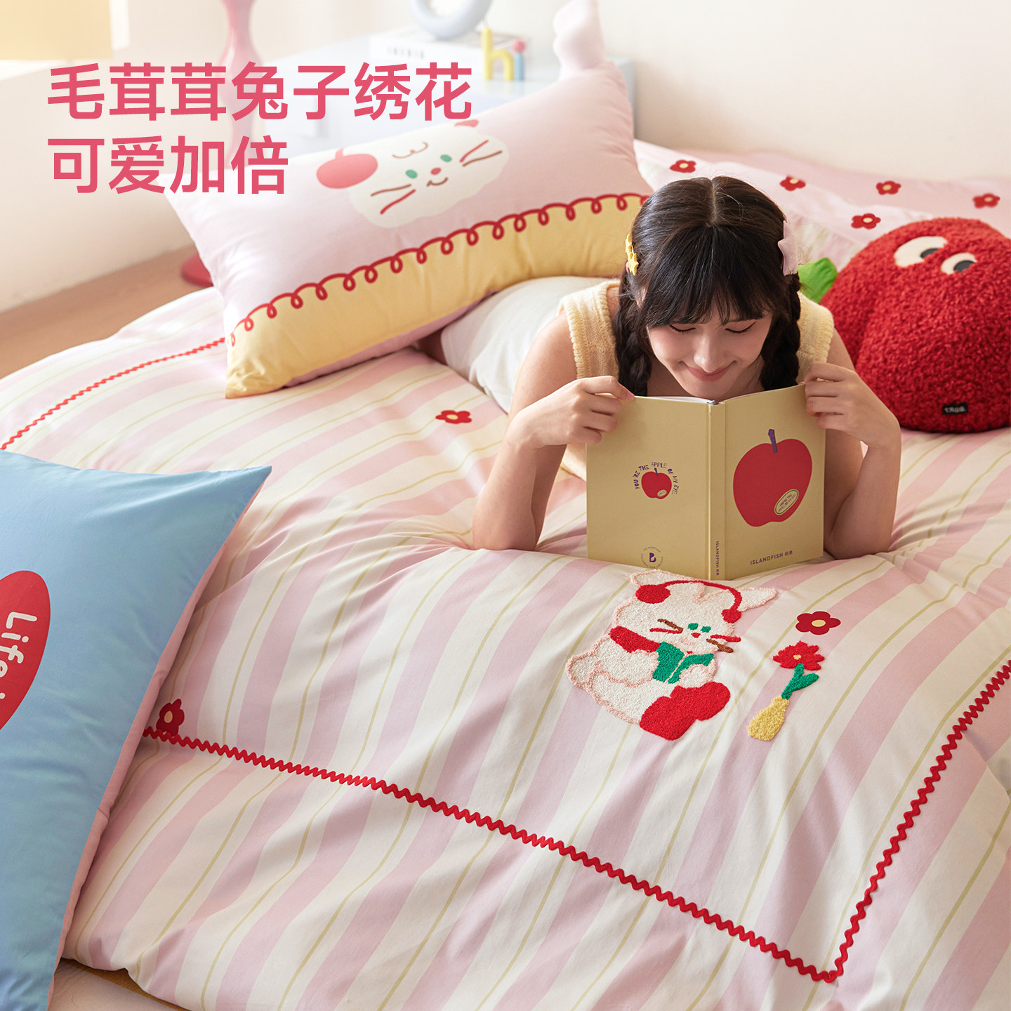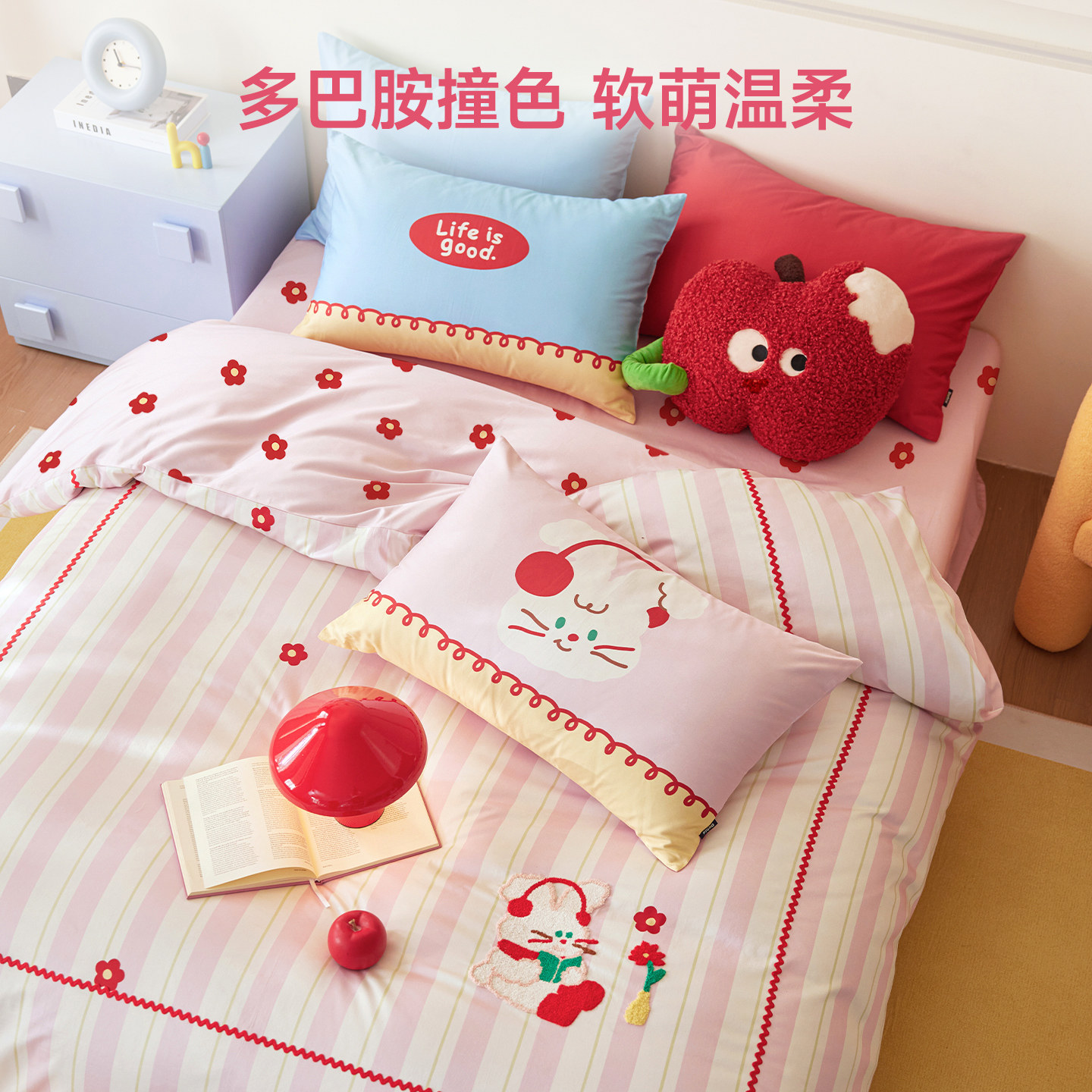 多喜爱全棉四件套纯棉卡通刺绣儿童三件套学生宿舍被套床单床品
