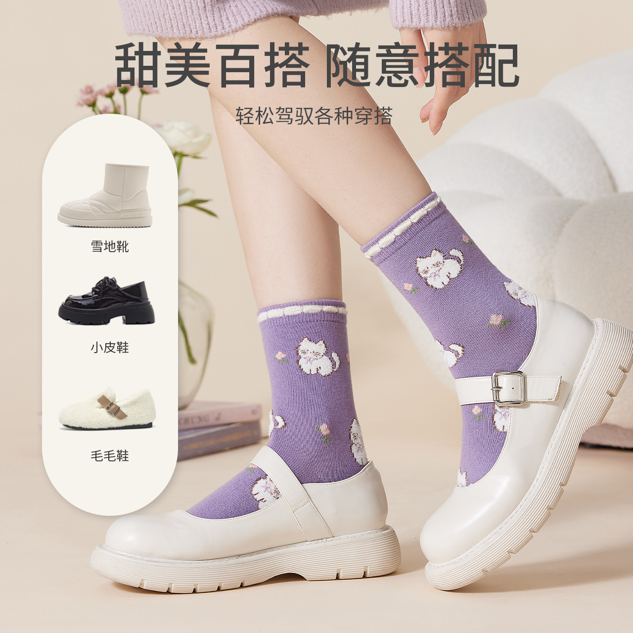 caramella秋冬新款女袜少女可爱羊毛袜厚保暖中筒袜女士袜子长袜
