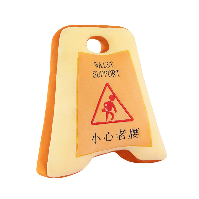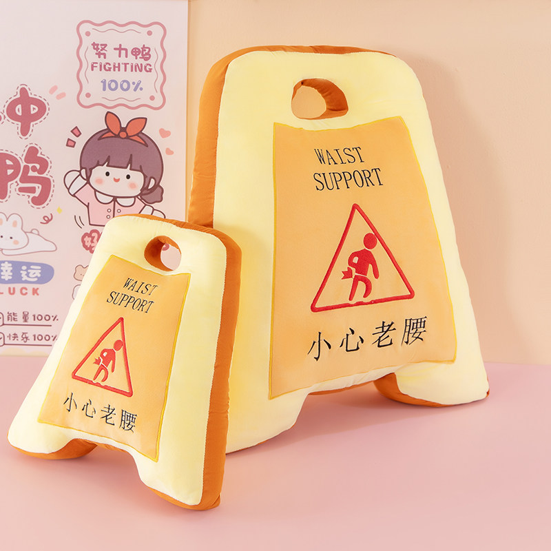 搞笑久坐小心老腰警示牌抱枕毛绒玩具办公室午睡枕生日礼物送男友