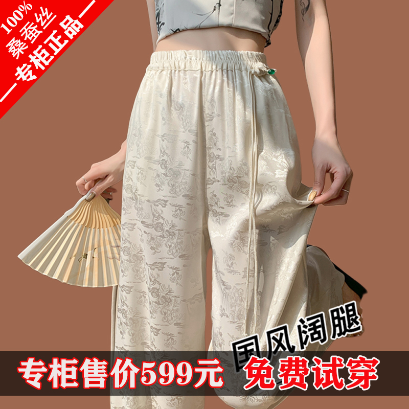 新中式国风提花桑蚕丝阔腿裤女春夏高腰垂感杭州真丝妈妈长裤子秋