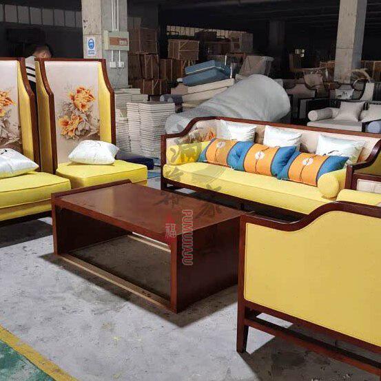 组合双人实木沙发简约现代洽谈沙发售楼处轻奢接待新中式休闲卡座