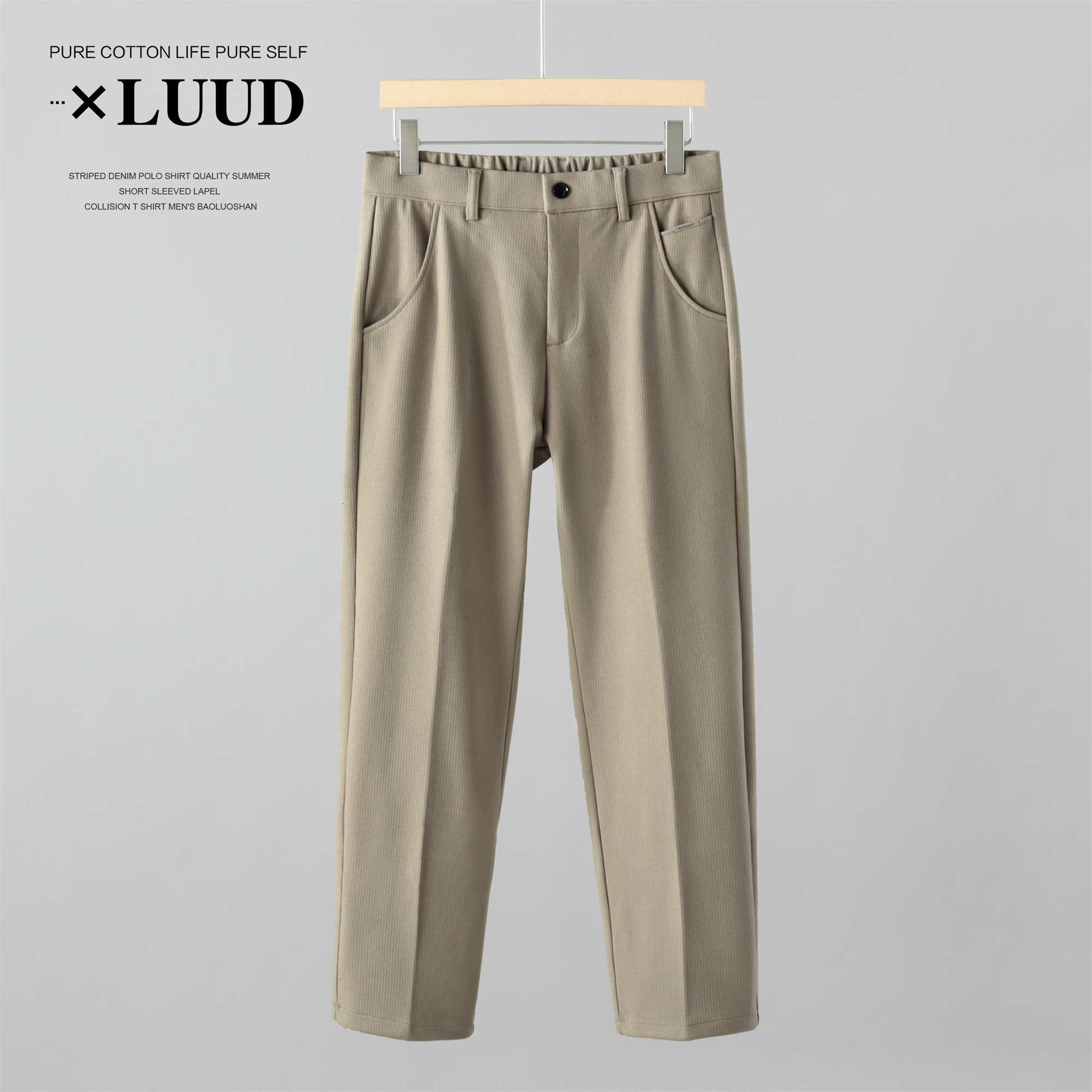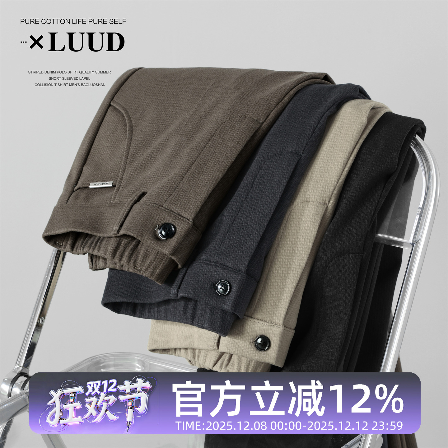LUUD 韩版毛呢休闲西裤男士复古立体剪裁锥形裤子合体小直筒长裤