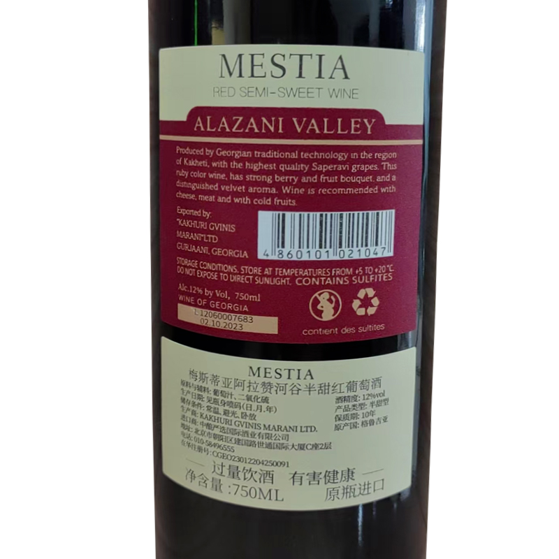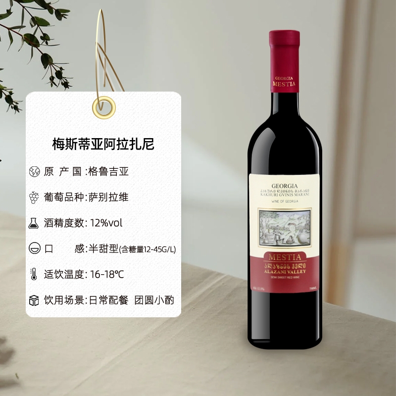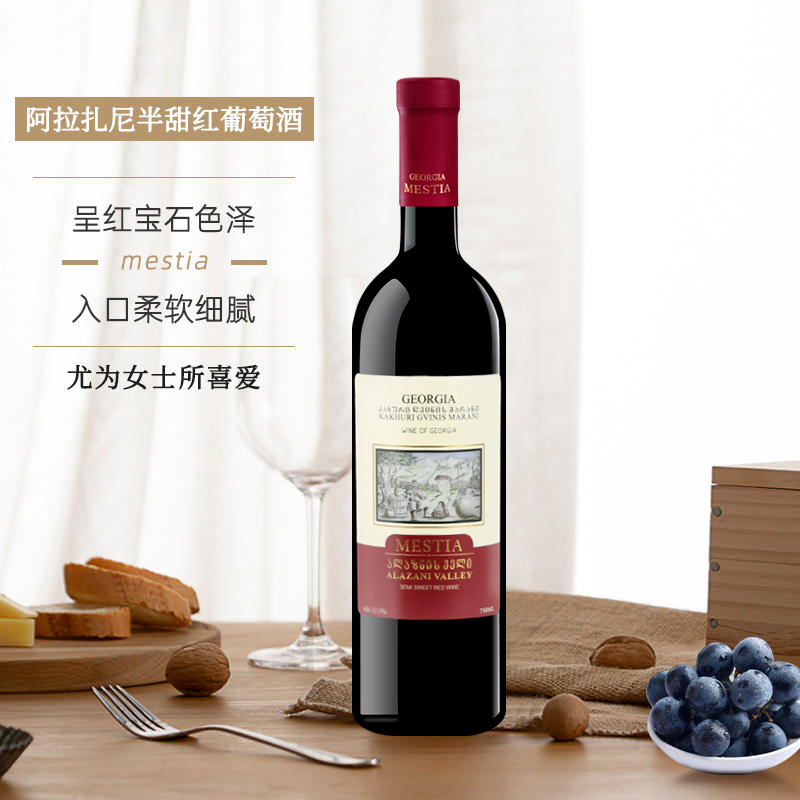 梅斯蒂亚阿拉扎尼半甜红酒 格鲁吉亚原瓶进口红葡萄酒6支宴请送礼