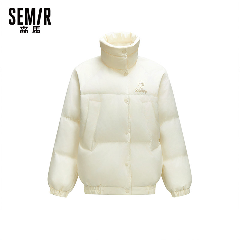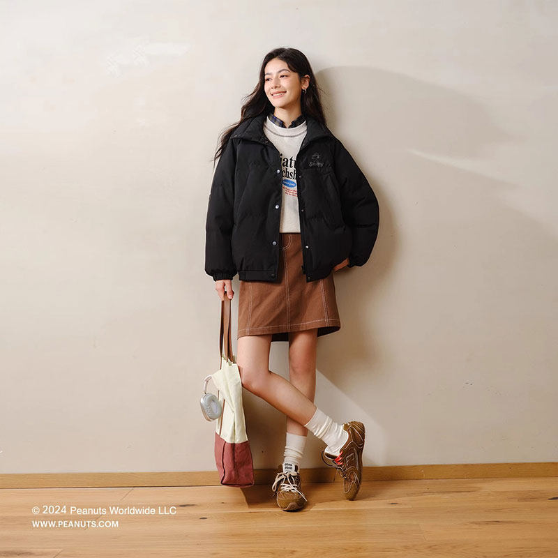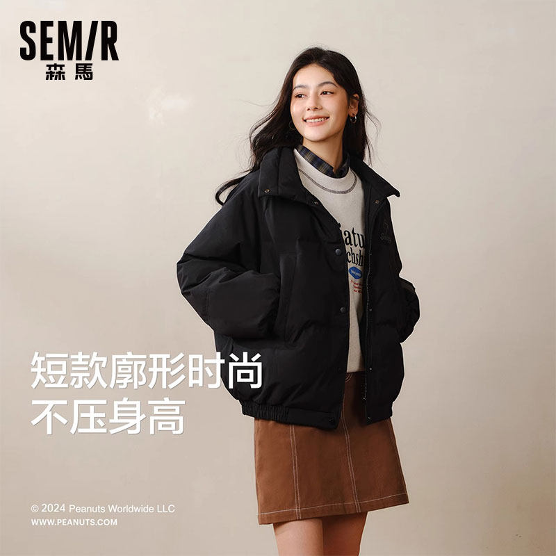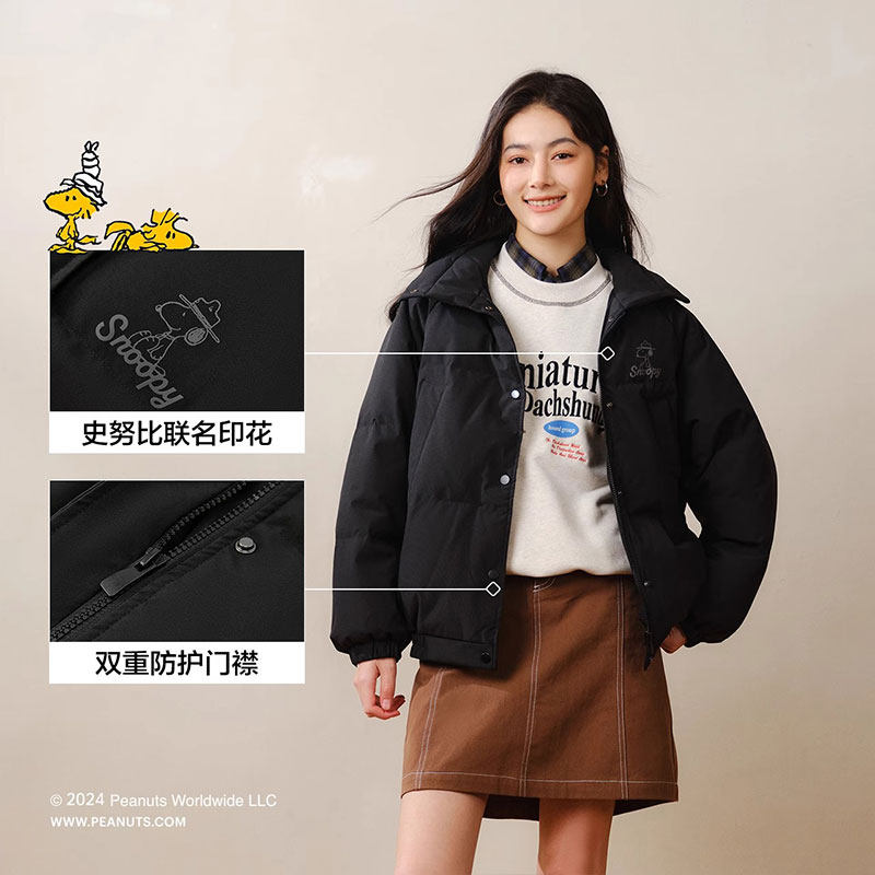 森马史努比IP羽绒服女立领宽松面包服2025冬季新款小个子三防外套