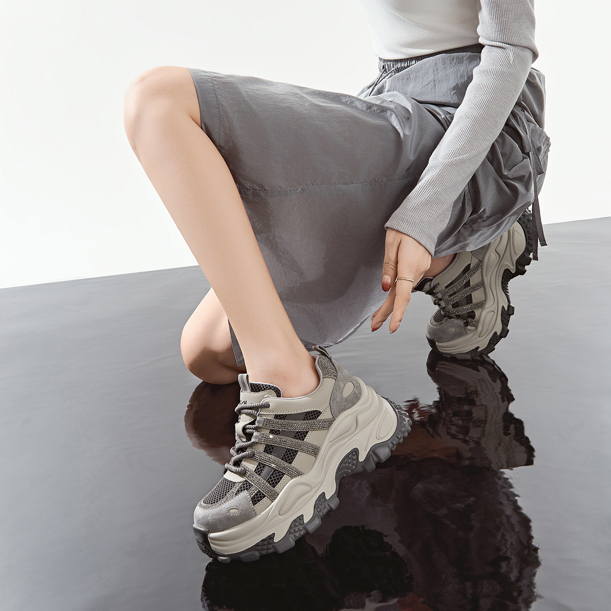 戈美其增高老爹鞋女2025秋冬新款休闲运动鞋女款百搭厚底跑步女鞋