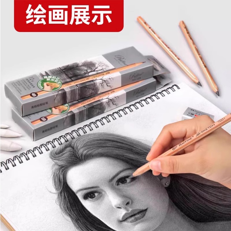Marco马可原木素描铅笔素描工具套装4b铅笔素描笔美术生专用铅笔2b素描铅笔套装铅笔绘画专用炭笔6b绘画铅笔