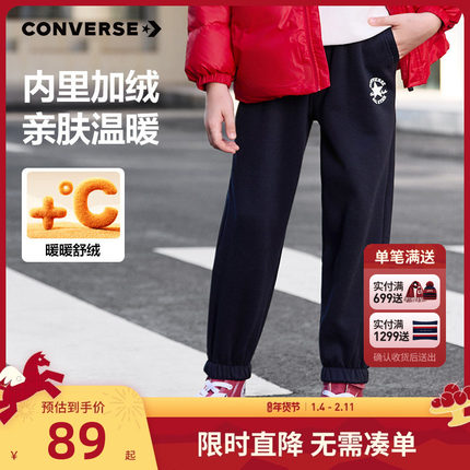 匡威童装男童加绒长裤2025秋冬新款裤子女童休闲裤儿童运动裤卫裤