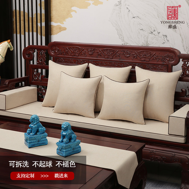 雍盛棉麻纯色新中式红木沙发坐垫