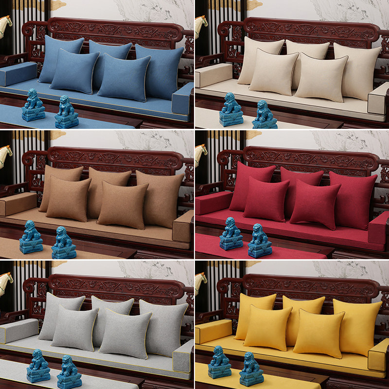 新中式红木沙发坐垫棉麻纯色沙发垫实木家具椅子座垫罗汉床垫定制