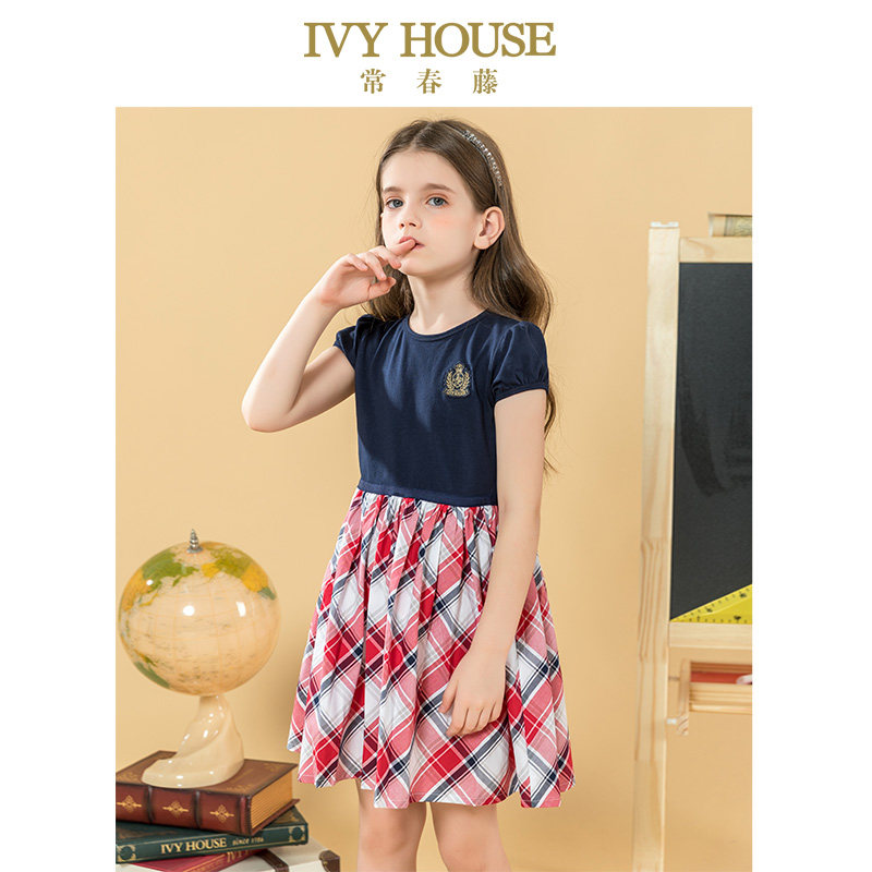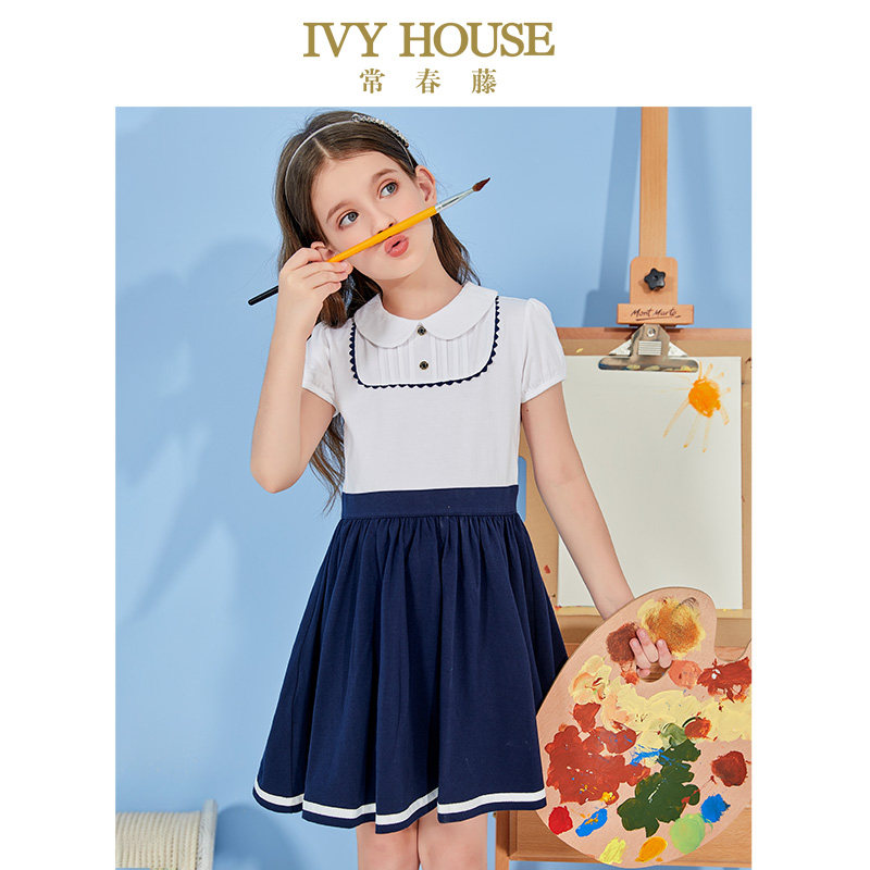 IVY HOUSE常春藤童装女中大童连衣裙短袖半袖棉质网红公主裙薄款
